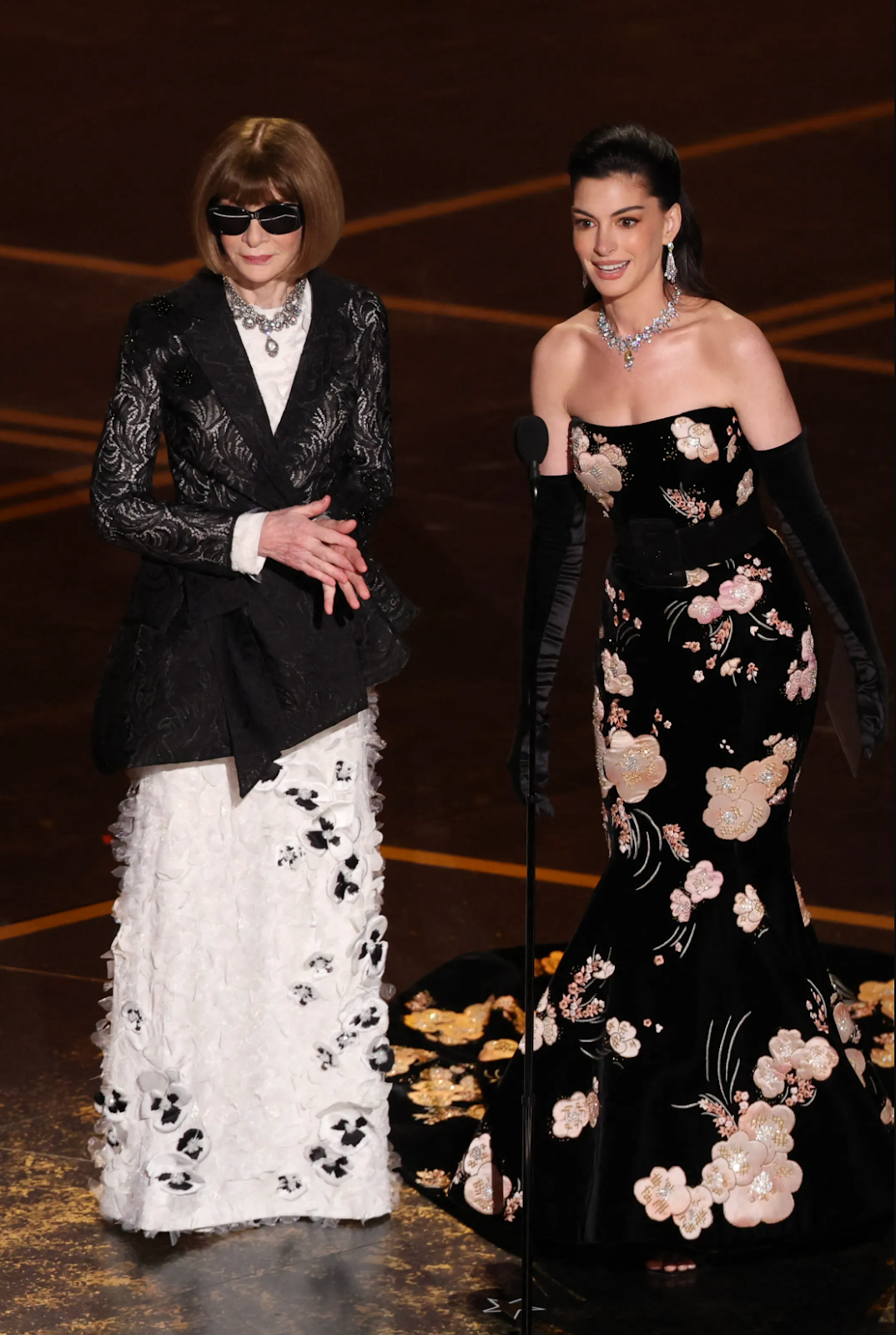 Last but certainly not least, the most fashionable moment of the night belonged to the Devil Wears Prada protagonist herself, presenting alongside the one and only Anna Wintour. Anne wore a breathtaking Maison Valentino gown adorned with intricate embroidered florals. Whether groundbreaking or not, one thing is clear: florals are forever for spring.