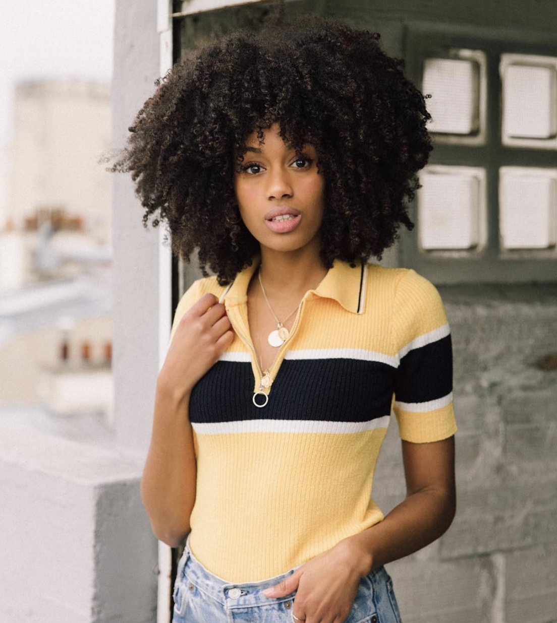 Brittany has styled her neutral kit top beautifully; it makes for a great office outfit or a classy and cosy weekend look.